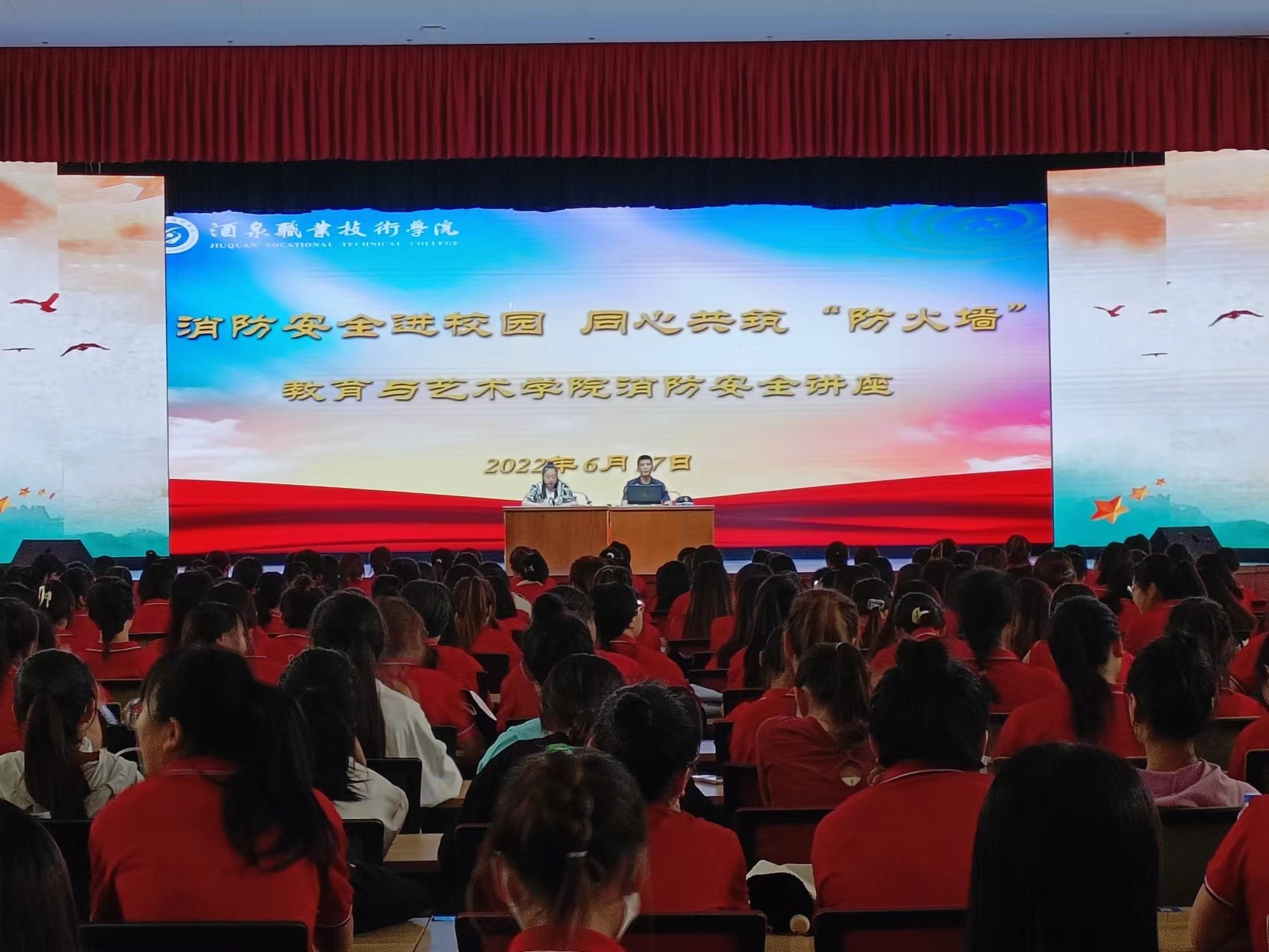 开展消防安全讲座。特邀酒泉经开区消防救援大队的消防员为师生开展“校园安全进校园,同心共筑防火墙”消防安全讲座,通过火灾基本常识、校园防火知识、火场逃生知识、扑救初起火灾等四个方面为消防安全知识学习,教育学生认识到水火无情,当火灾来临时,要沉着冷静,运用正确的逃生方法进行自救。