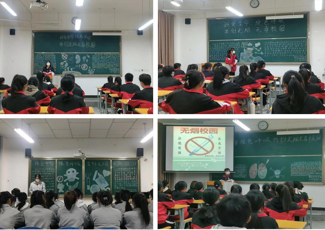 “珍爱生命 绿色呼吸 共创无烟无毒校园”主题班会。各班通过观看视频、图片、典型案例进行了警示教育,让同学们了解到香烟毒品的性质、特征以及危害,同时引导同学们树立正确的人生观、价值观和法制观。主题班会还通过讲解、讨论等方式向同学们介绍了吸烟吸毒的危害,拒绝毒品、烟草的方法与技能,增强了安全意识,提高了拒绝毒品、烟草诱惑的能力。主题班会后,辅导员、班主任、学生干部通过走访学生宿舍,学生群体反馈信息等途径,对本学院学生进行了全面、细致的排查,精准了解了本学院吸烟学生信息,与1261名在校学生签定了“校园禁烟控烟”承诺书。