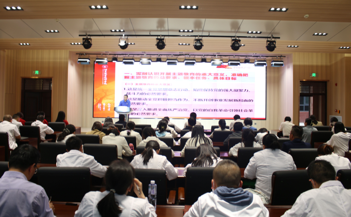 易志军书记以“理想 信念 使命”为题,首先从深刻认识开展主题教育的重要意义、总要求、根本任务等进行了详细的阐述。他强调,要坚持学思用贯通、知信行统一,把习近平新时代中国特色社会主义思想转化为坚定理想、锤炼党性和指导实践、推动工作的强大力量,努力在以学铸魂、以学增智、以学正风、以学促干方面取得实实在在的成效。接着,从准确把握理想信念的深刻内涵,坚定理想信念是共产党人安身立命的根本入手,要求各党组织和党员干部要用历史唯物主义世界观和方法论抓好思想理论建设,抓好党性教育,强化理想信念的体制机制保障,始终保持共产党人的本色,彰显共产党人的人格力量。最后,从坚定理想信念,坚守使命追求阐述,要求广大师生要把开展主题教育同深入贯彻党的二十大精神结合起来,积极行动,以实干担当促发展,高效做到专业建设匹配产业发展,人才培养质量匹配产业高质量发展要求,以创建酒泉职业技术大学为奋斗目标,以推动建设市域产教联合体为抓手,深化产教融合、科教融汇,不断提升人才培养质量,提高毕业生在酒泉的就业比率,为加快建设幸福美好新酒泉贡献酒职力量。