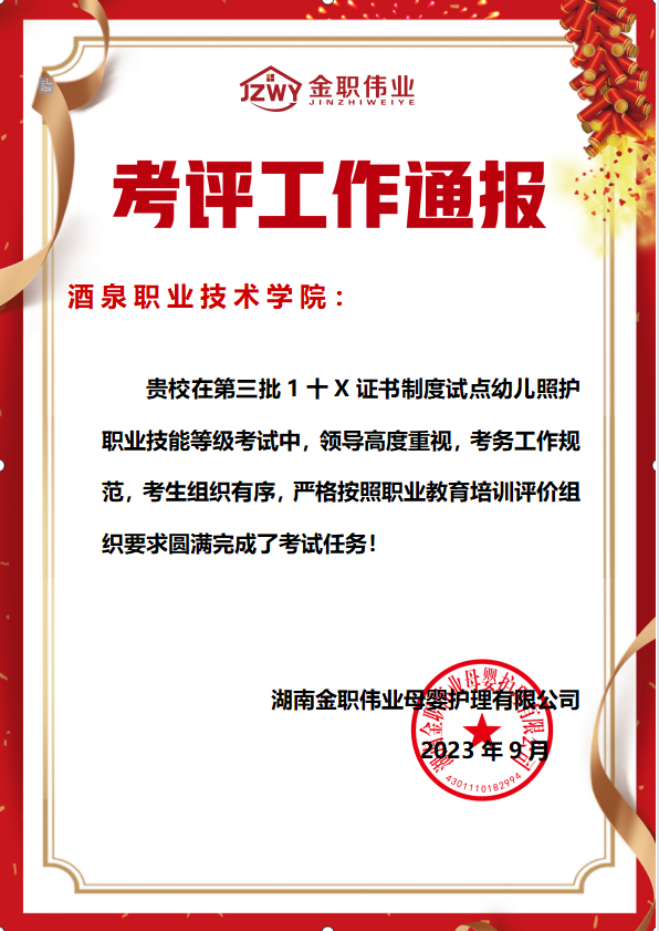 为深入贯彻落实习近平总书记甘肃重要讲话和指示精神,落实《国家职业教育改革实施方案》《教育部甘肃省人民政府必赢766net手机版整省推进职业教育发展打造“技能甘肃”的意见》文件精神,凝心聚力打造“技能甘肃·匠心酒泉”职教高地,提升技能型人才培养质量,促进职业教育高质量发展,必赢766net手机版组织承办的1+X幼儿照护职业技能等级证书(中级)考评于2023年9月23日圆满结束,完成2023年第三批次41人培训考评工作。