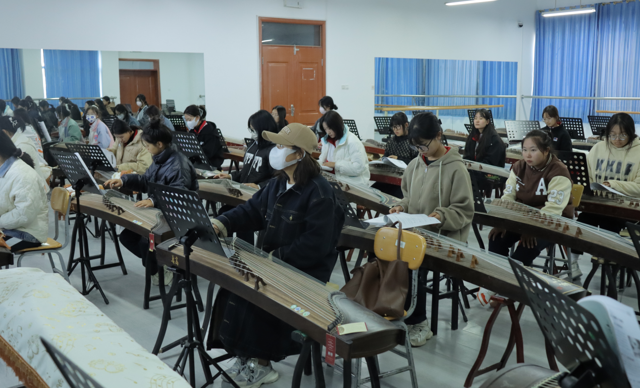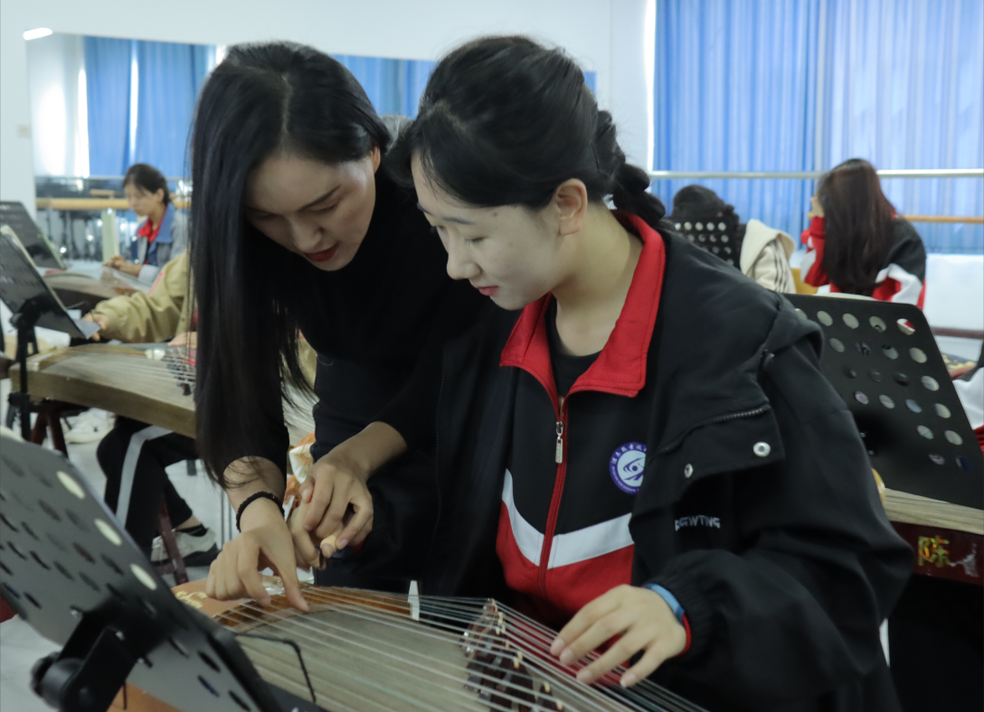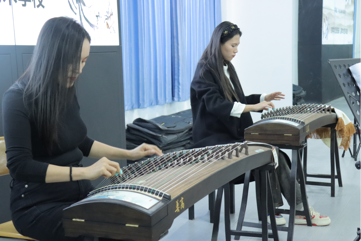随后王老师讲练结合,对学生弹奏古筝的坐姿、指法等逐一指导。学生们情绪高涨、兴趣浓厚,纷纷表示在课堂中感受到古筝的历史韵味。