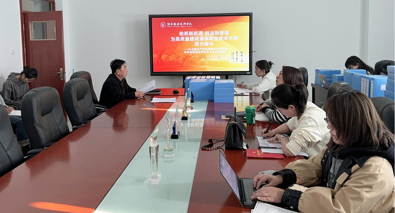 10月15日,中国共产党酒泉职业技术学院委员会换届选举党员大会胜利召开,易志军同志代表中国共产党酒泉职业技术学院委员会作了题为《抢抓新机遇 担当新使命 为高质量建设酒泉职业技术大学努力奋斗》的工作报告,报告引发了师生的强烈共鸣。为进一步贯彻落实党员大会上的报告精神,10月31日,必赢766net手机版专题学习了中国共产党酒泉职业技术学院委员会换届选举党员大会上的报告。