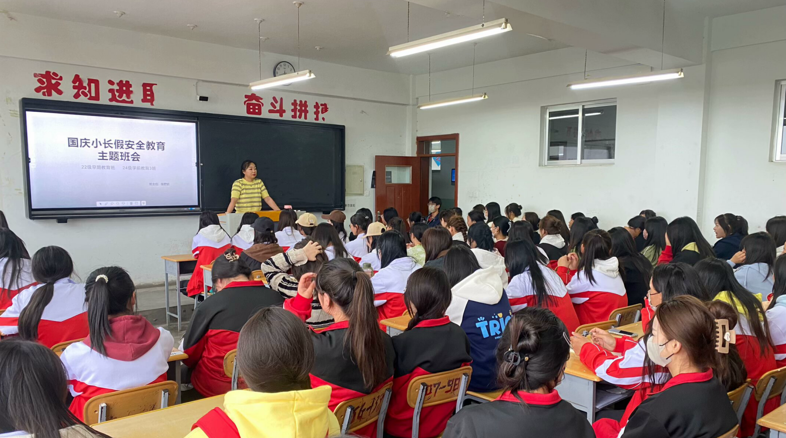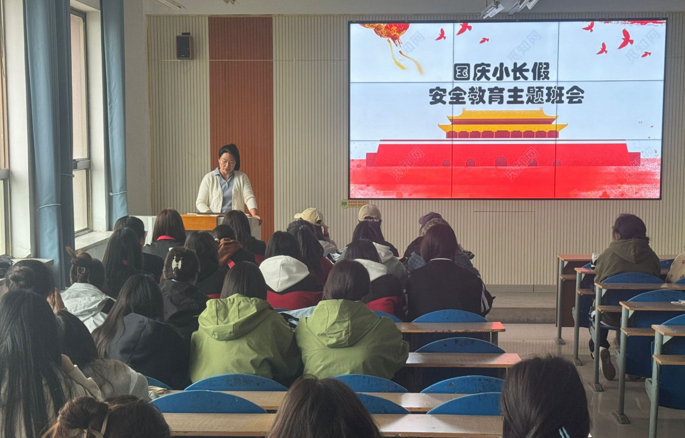 安全教育先行,提升安全理念。学院组织各班级召开国庆放假前安全教育主题班会,班会中各班主任围绕校园安全、防溺水、交通安全、消防安全、防电信网络诈骗等几个方面进行安全教育,重点强调了国庆假期中的出游安全问题,提醒学生要时时保持警惕,紧扣“安全之栓”,提高安全意识,切实强化学生安全意识和自我保护能力。